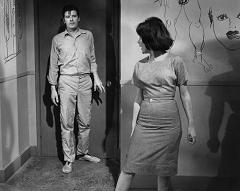 Shock Corridor Shock Corridor est un film américain réalisé par Samuel Fuller, sorti en 1963. Distribution : Peter Breck : Johnny Barett Constance Towers : Cathy Gene Evans : Boden James Best : Stuart Hari Rhodes : Trent Larry Tucker : Pagliacci Paul Dubov : Dr. Menkin Synopsis : Johnny Barett, journaliste ambitieux qui souhaite gagner le Prix Pulitzer, projette de s'immerger dans un asile psychiatrique pour démasquer l'auteur d'un meurtre qui s'y est déroulé. Préparé par un psychiatre, ancien spécialiste de la guerre psychologique, et avec la complicité réticente de sa compagne Cathy, stipteaseuse, qui se fait passer pour sa sœur victime de ses tendances incestueuses, il se fait arrêter puis interner tout en continuant à simuler des troubles mentaux. Dans le couloir central de l'établissement, la "rue" où se cotoient tous les patients, il lui faut affronter et composer avec les névroses et psychoses des aliénés pour découvrir la vérité. Alors que son enquête avance, le traitement aux électrochocs, sa simulation continuelle de la maladie et l'environnement dans lequel il évolue commencent a générer chez lui un état de confusion mentale qu'il peut de moins en moins maîtriser. Tournage : Le tournage a duré seulement une dizaine de jours. La dernière scène du film est celle où Barett, victime d'hallucinations, voit la pluie d'un violent orage inonder le couloir et la foudre le frapper. Cette séquence apocalyptique impliquait la destruction des décors. C'était aussi pour Fuller un moyen de s'assurer qu'on ne lui ferait pas retourner quelques scènes pour modifier son film. Fiche technique : Titre : Shock Corridor Titre original : Shock Corridor Réalisation : Samuel Fuller Scénario : Samuel Fuller Production : Sam Firks, Leon Fromkess, Samuel Fuller Musique : Paul Dunlap Photographie : Stanley Cortez et Samuel Fuller (scènes hallucinatoires) Direction artistique : Eugène Lourié Montage : Jerome Thoms Pays d'origine : États-Unis Format : Noir et blanc avec des séquences en couleurs - 1,85:1 - Mono - 35 mm Genre : drame Durée : 101 minutes Sortie pays d'origine : 11 septembre 1963 • Pays : Etats-Unis Film interdit aux moins de 12 ans lors de sa sortie en France |